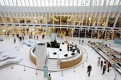 World Trade Center Check Stores> Stunning shopping and transportation hub offering a mix of luxury, fashion, and lifestyle stores. Its wing-like structure makes it a landmark destination. Inside in the Oculus, shoppers can explore high-end brands like Apple, Boss, and Kate Spade, along with popular retailers such as Sephora and Zara. The mall also features a variety of dining options, from quick bites to upscale restaurants. Lower Manhattan, Westfield World Trade Center |